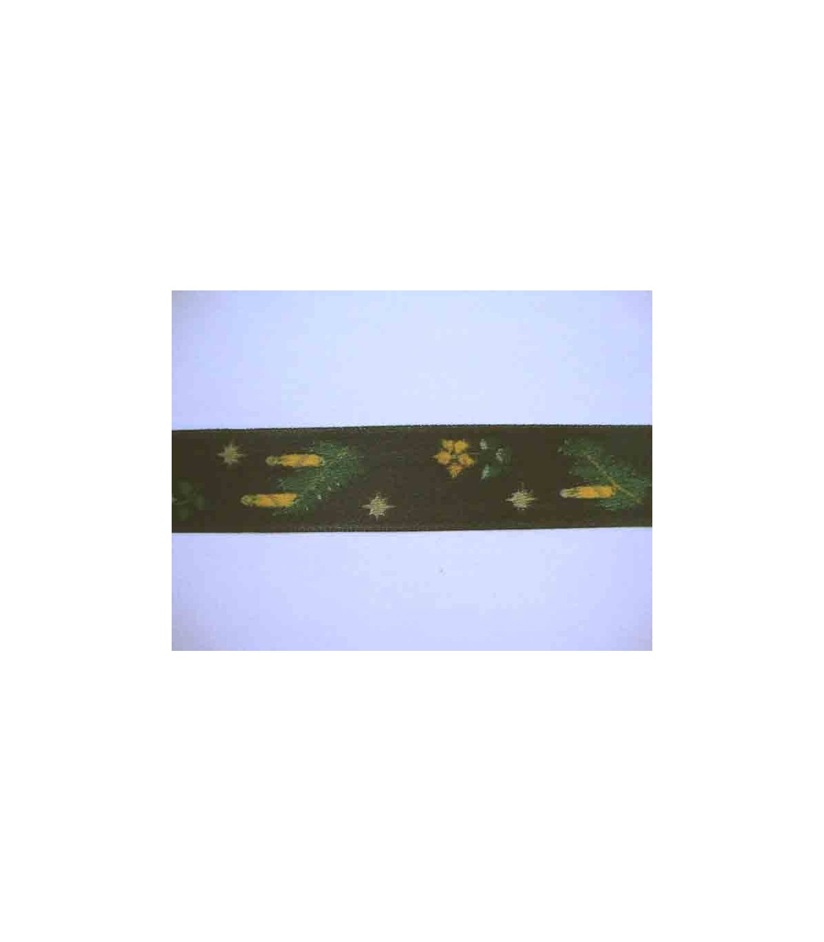 Sierband Kerst Taupe met dennetak en kaarsjes 25mm