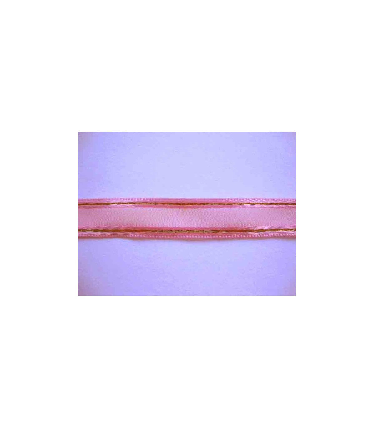 Decoratieband, een tweekleurig roze sierbandje van 15 mm breed met aan beide zijden een gouddraad