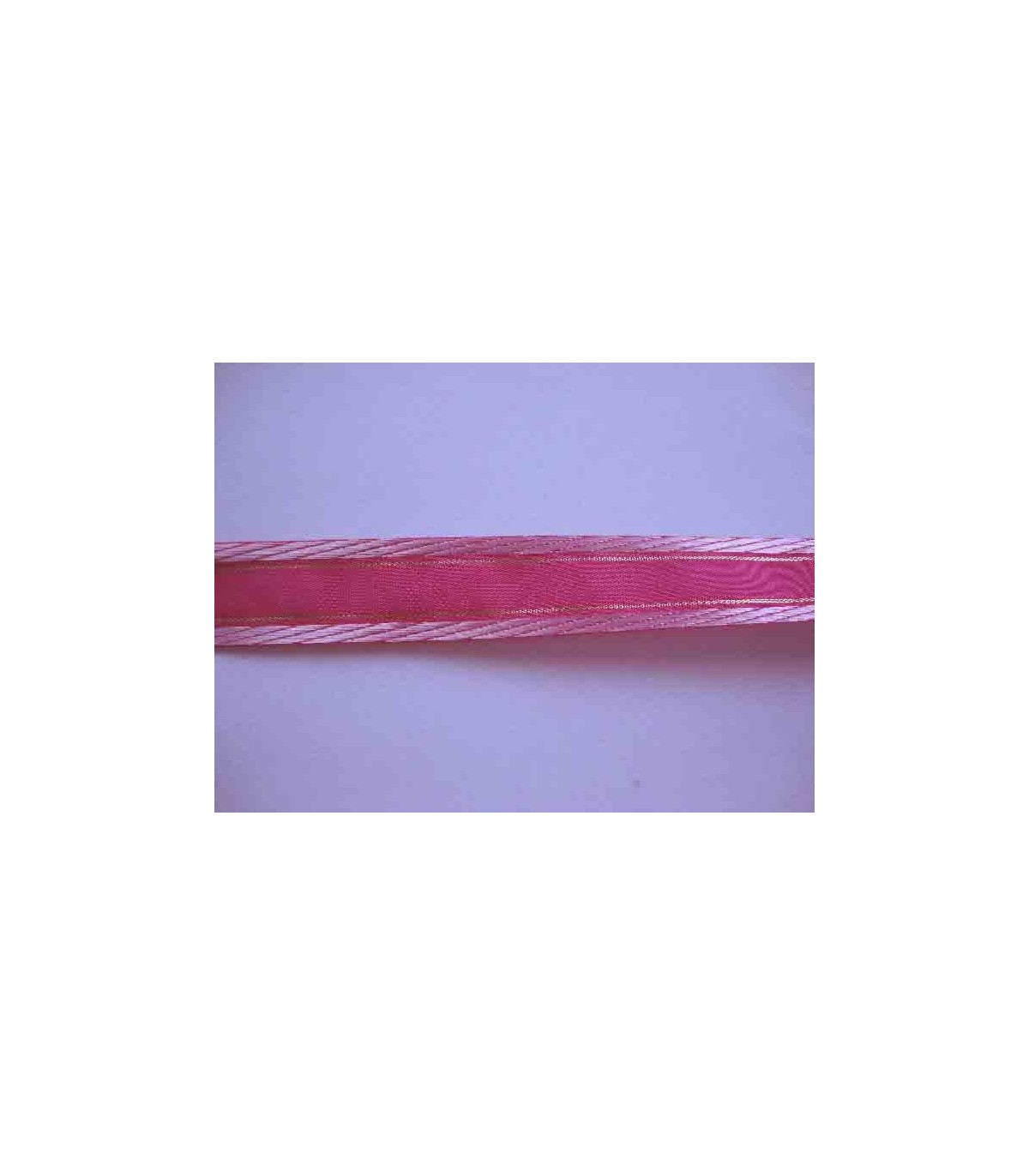 Decoratieband, een pinkkleurig sierbandje met roze schuine streepjes en een gouddraad