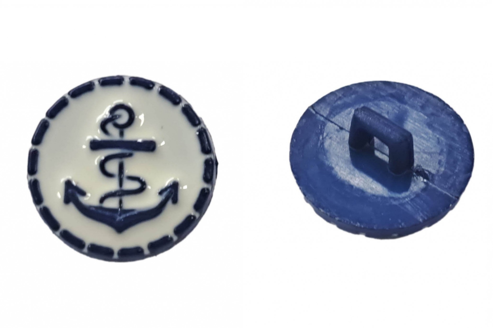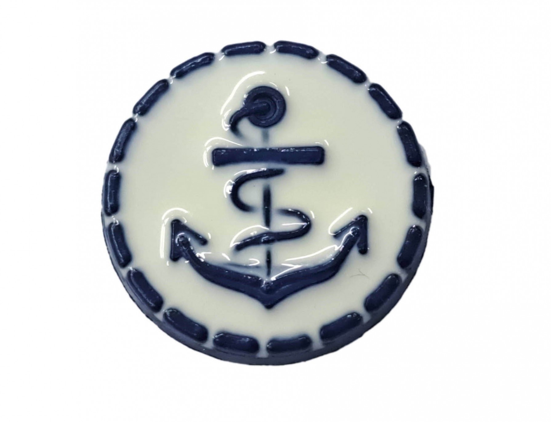 Ankerknoop op steeltje Donkerblauw anker op witte achtergrond 16mm ak113