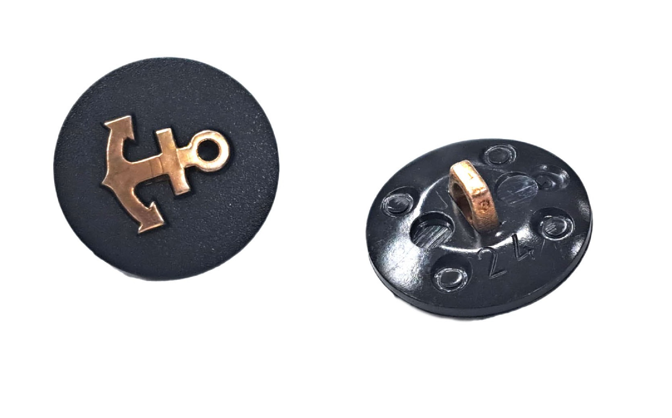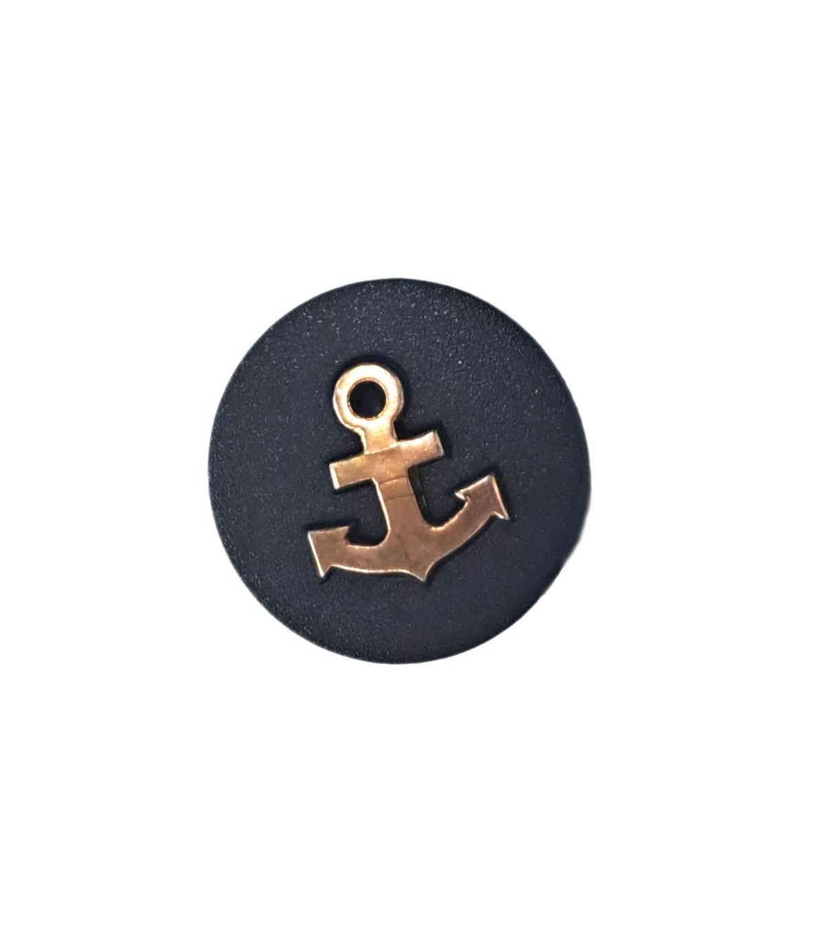 Ankerknoop op steeltje Zwart met gouden anker 15mm ak119