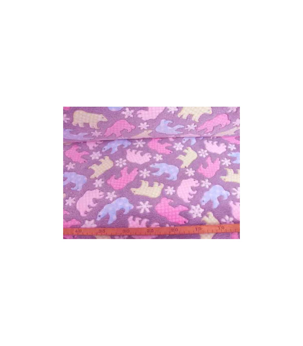 Een superzachte lichtgrijze zijdefleece met gekleurde ijsberen en een sneeuwkristal.
