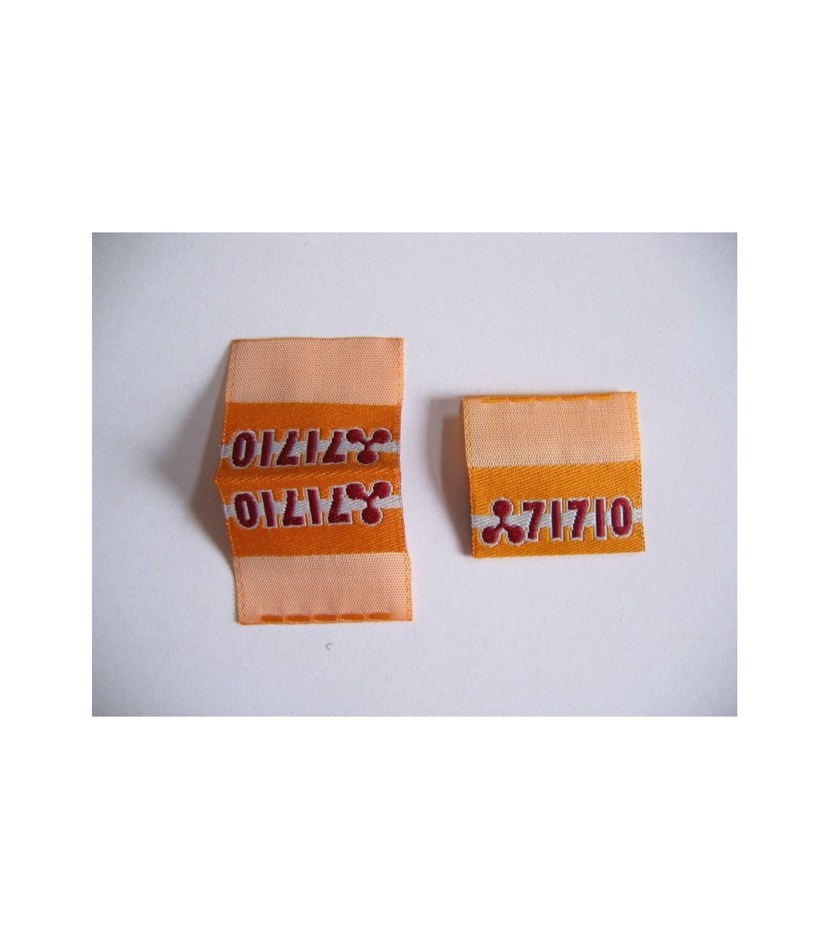 Tussen de naad uitstikbaar label van 2.5 x 2.5 cm.