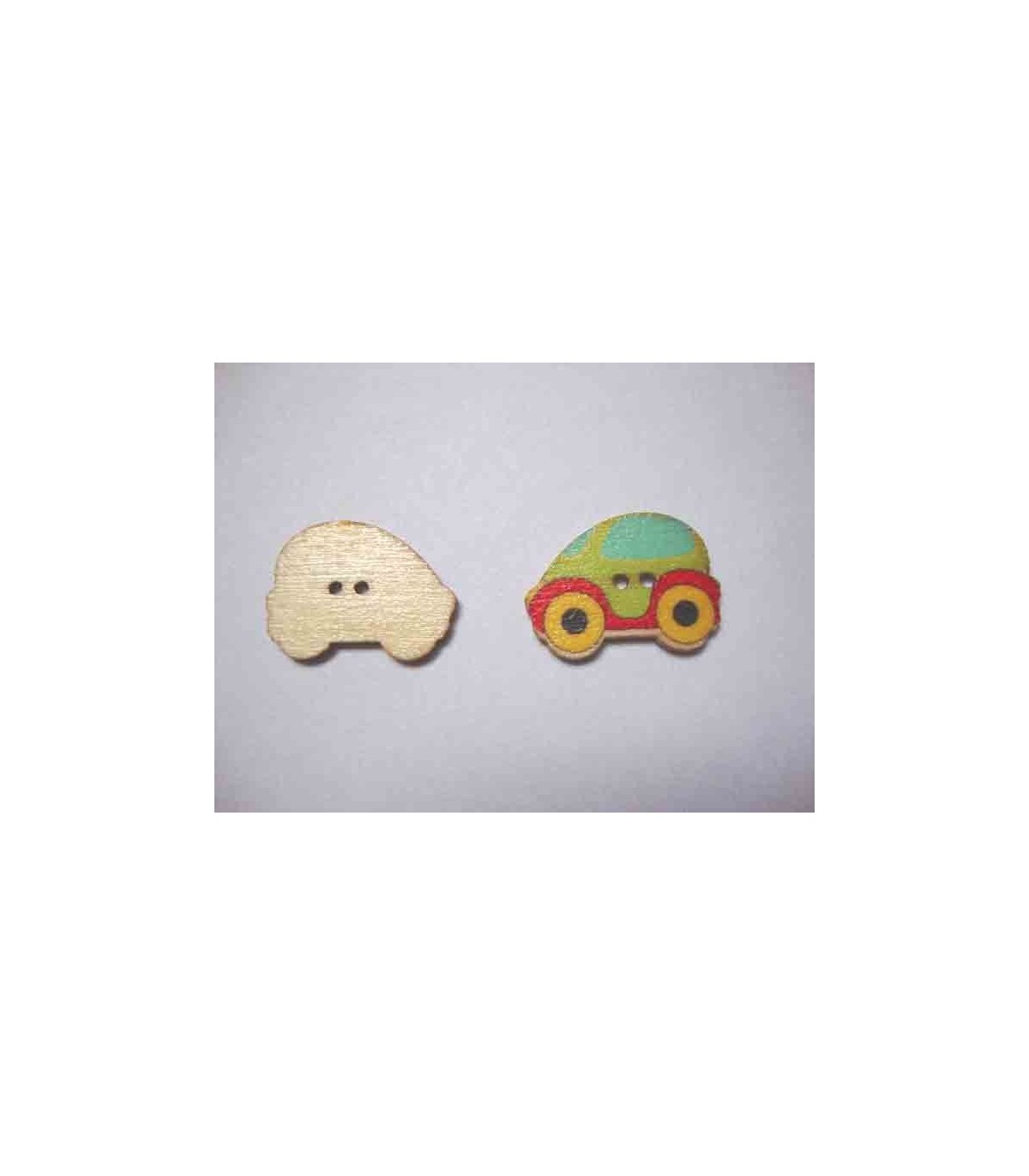 Houten knoop van een limegroene auto in diverse kleuren