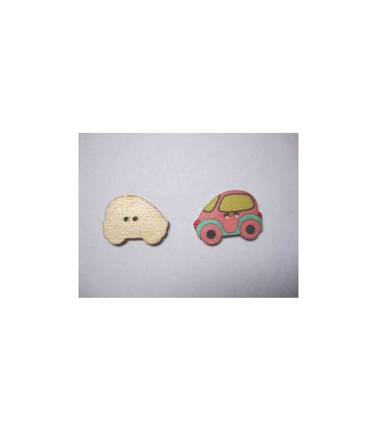 Houten knoop van een roze auto in diverse kleuren