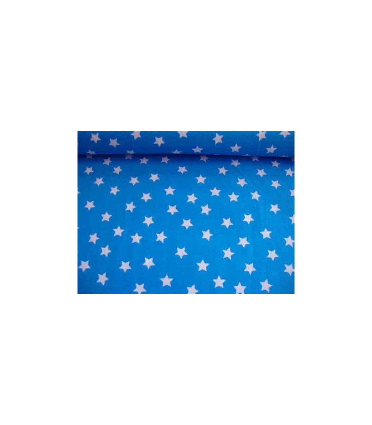 Een aquakleurige katoen met witte sterren met een doorsnee van 15 mm.