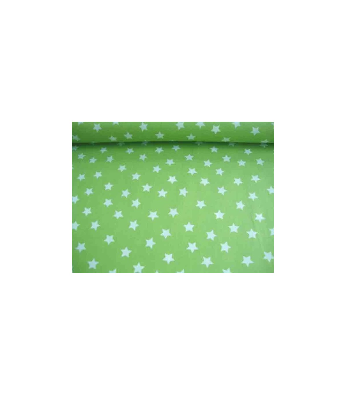 Een limekleurige katoen met witte sterren met een doorsnee van 15 mm.