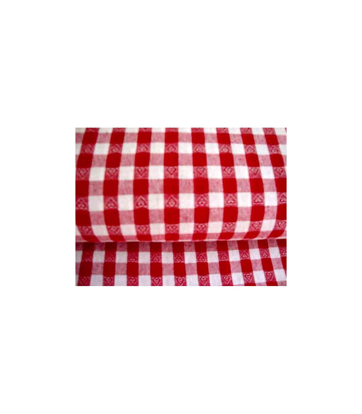 Een rood/witte boerenbont ruit van 10 x 10 mm. met ingeweven hartjes
