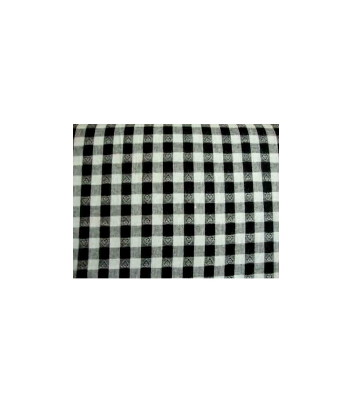 Een zwart/witte boerenbont ruit van 10 x 10 mm. met ingeweven hartjes.