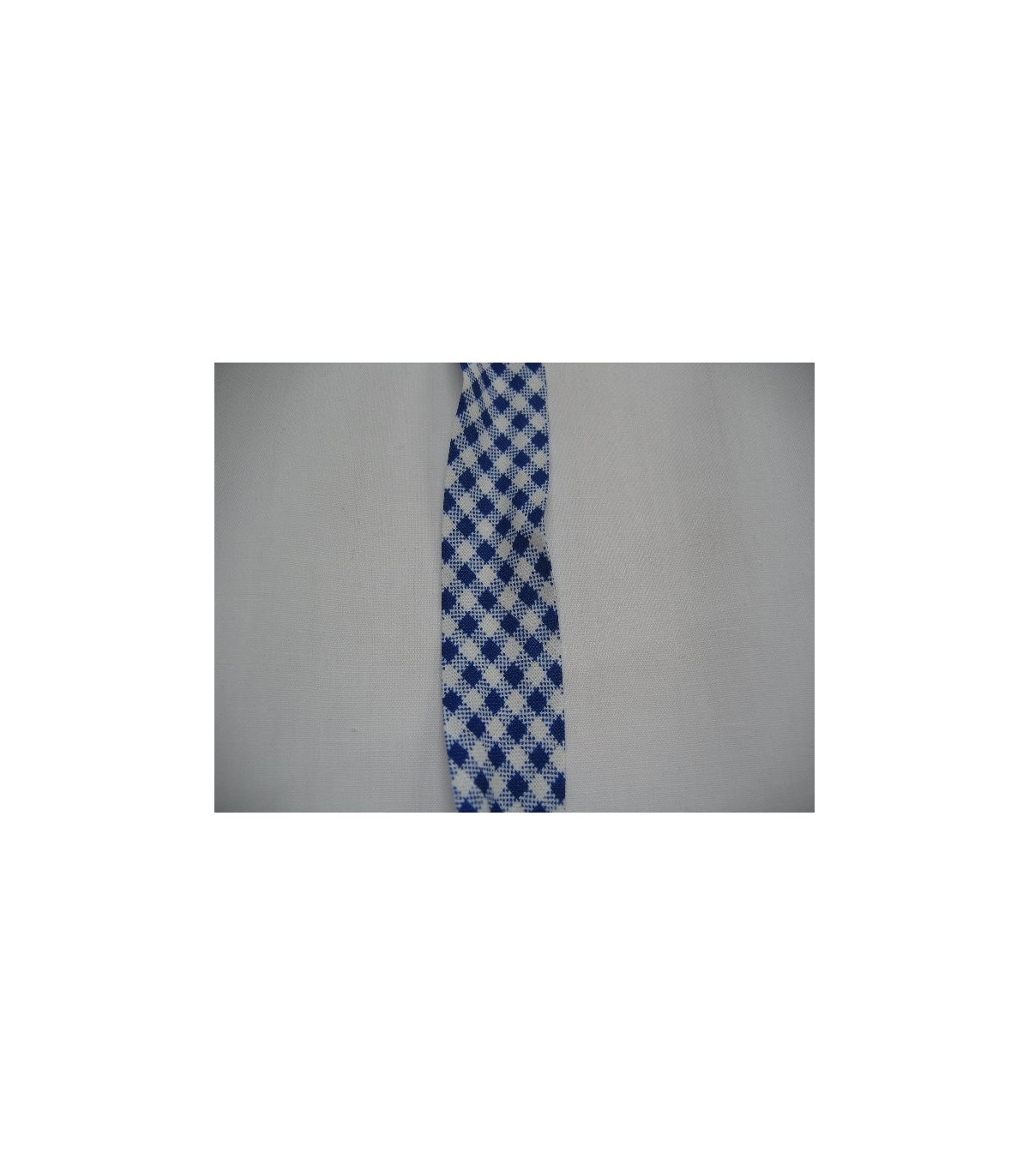 Kobalt geblokt biaisband. 100% katoen 2 cm. breed