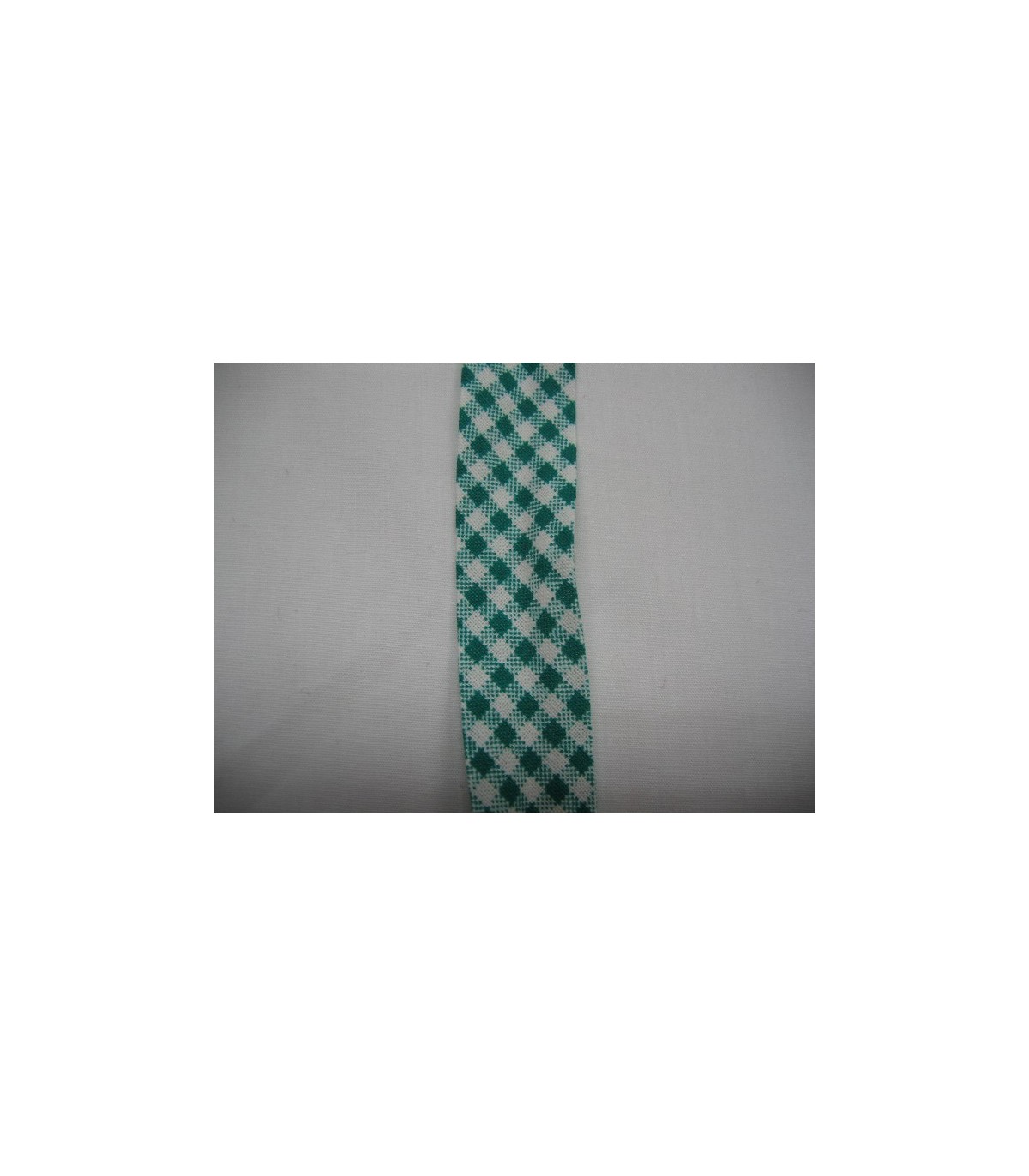 Groen geblokt biaisband. 100% katoen 2 cm. breed