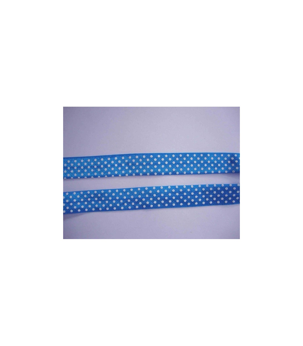 Aquakleurig elastisch biaisband met witte stip. 2 cm. breed