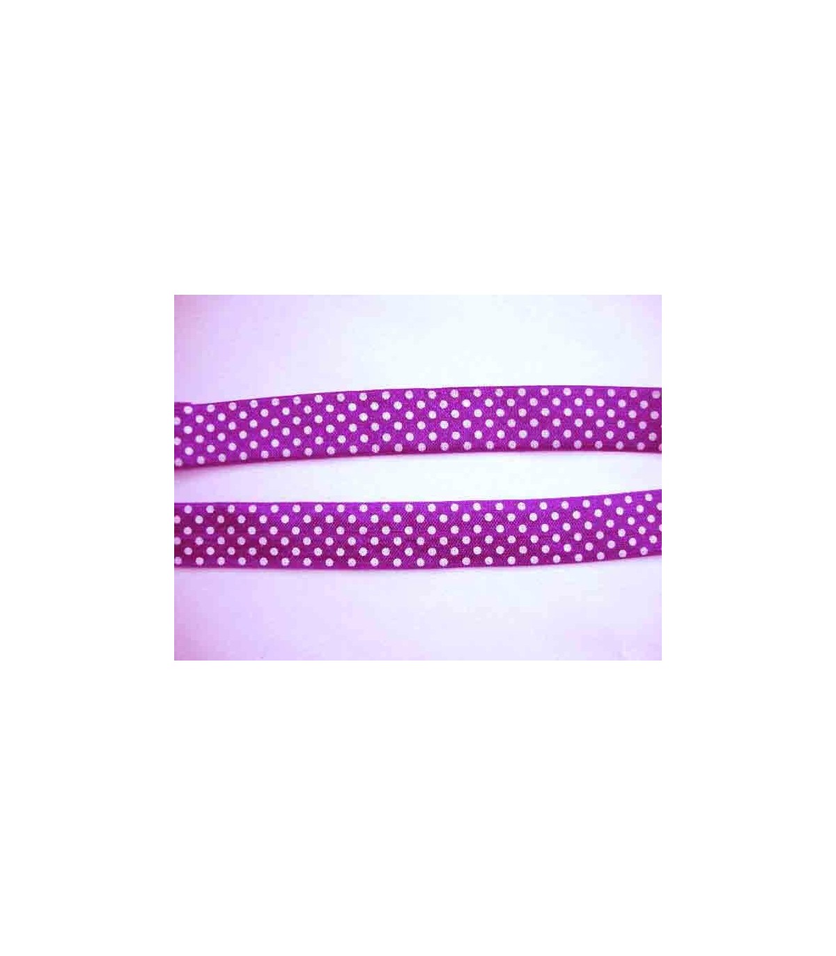 Paars elastisch biaisband met witte stip. 2 cm. breed