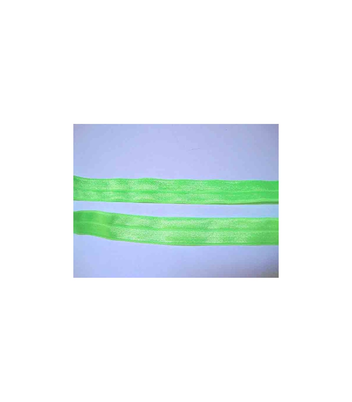 Vouwtres. Licht limekleurig elastisch biaisband van 2 cm. breed.