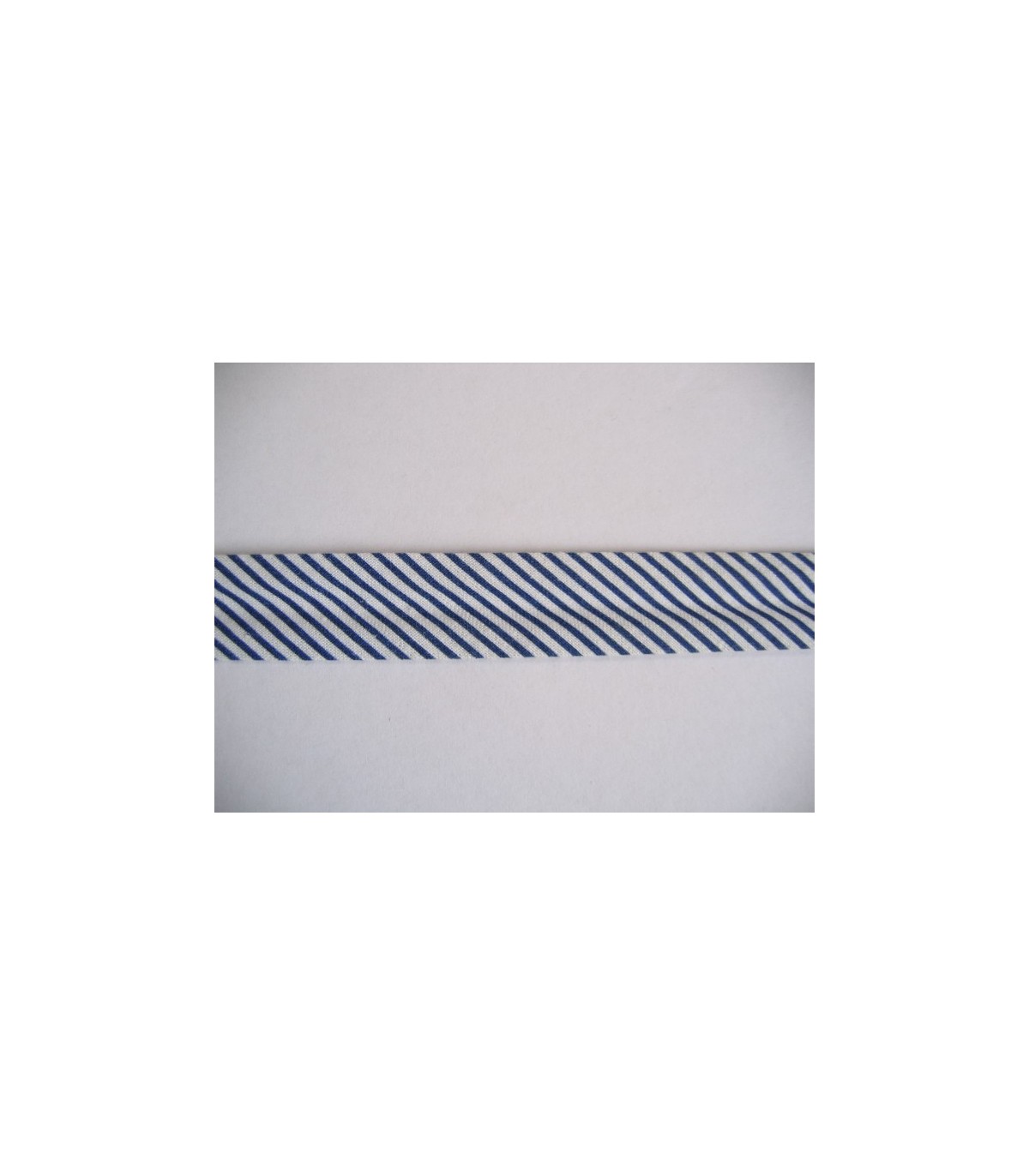 Donkerblauw/wit gestreept biaisband.