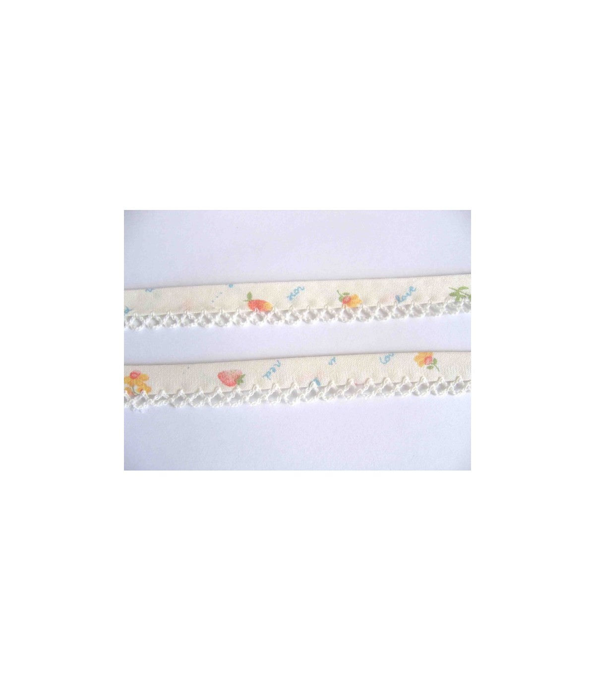 Biaisband creme met aardbei, bloem en cremekleurige ruche.