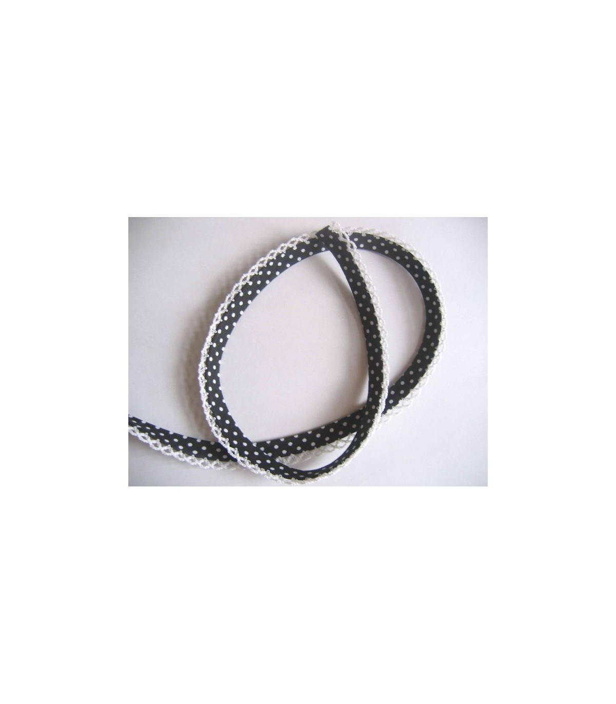 Biaisband Zwart met witte stip en ruche.