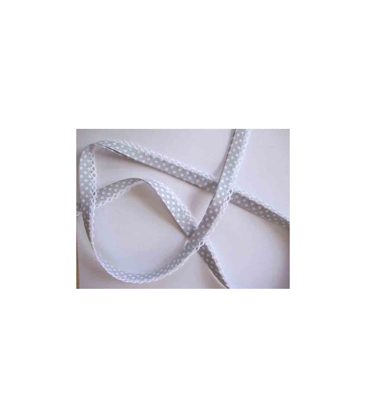 Biaisband Lichtgrijs met witte stip en ruche 50