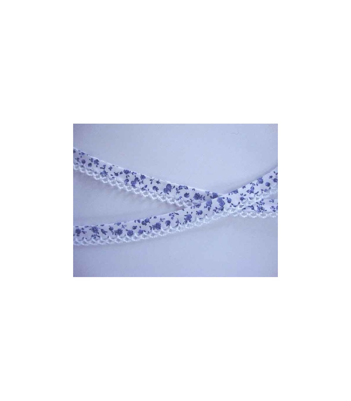 Biaisband met witte ruche en jeansblauwe bloem 57