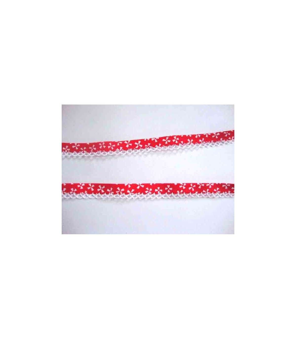 Biaisband wit met een witte ruche en een witte bloemprint.