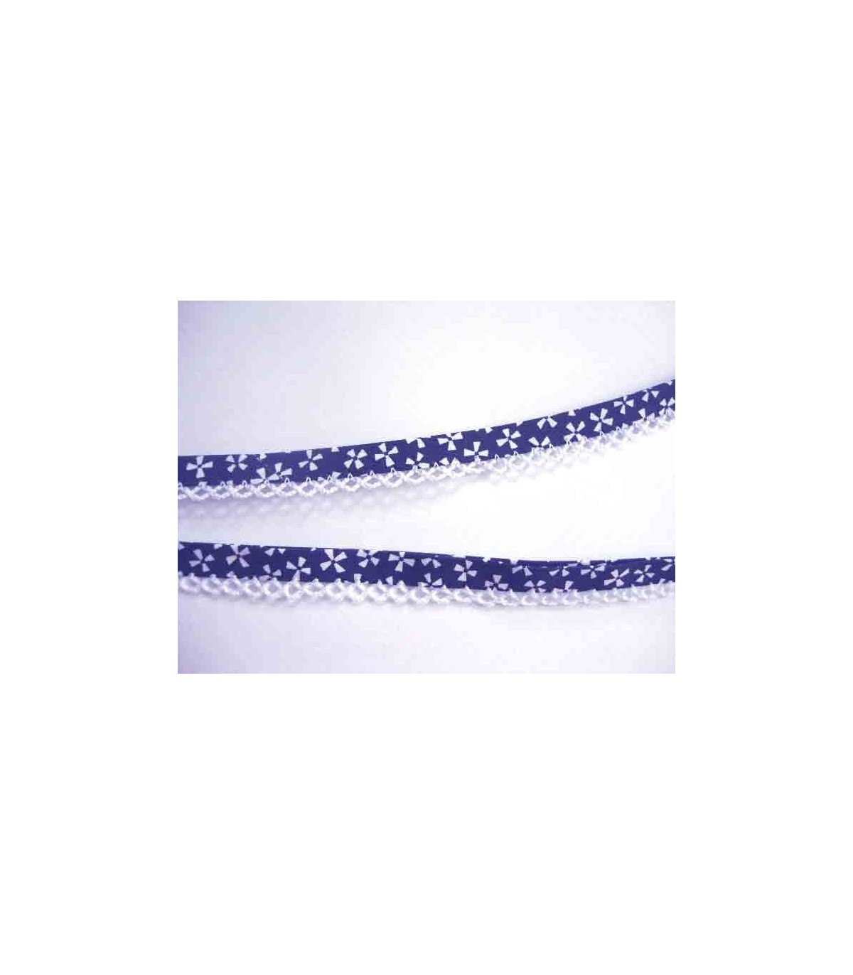 Biaisband Donkerblauw met witte bloem en ruche 67