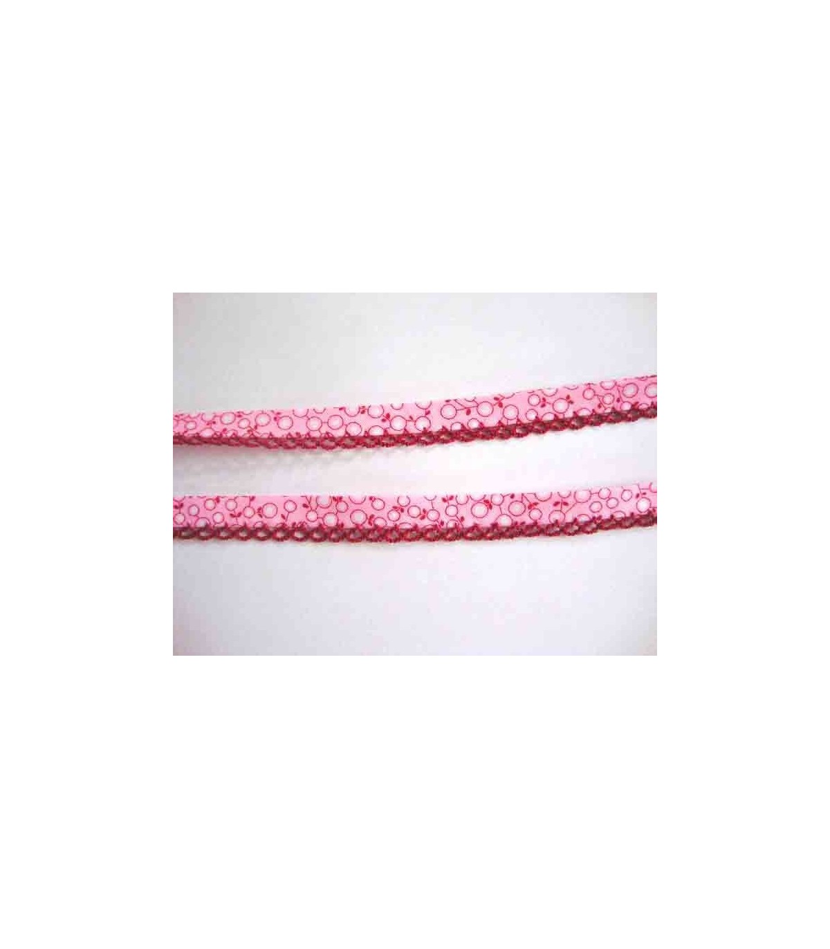 Biaisband Roze met witte besjes en donkerrode ruche 69