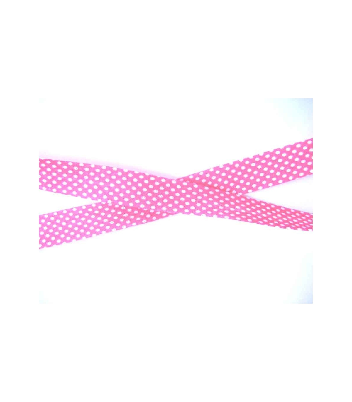 Roze biaisband met witte stip.