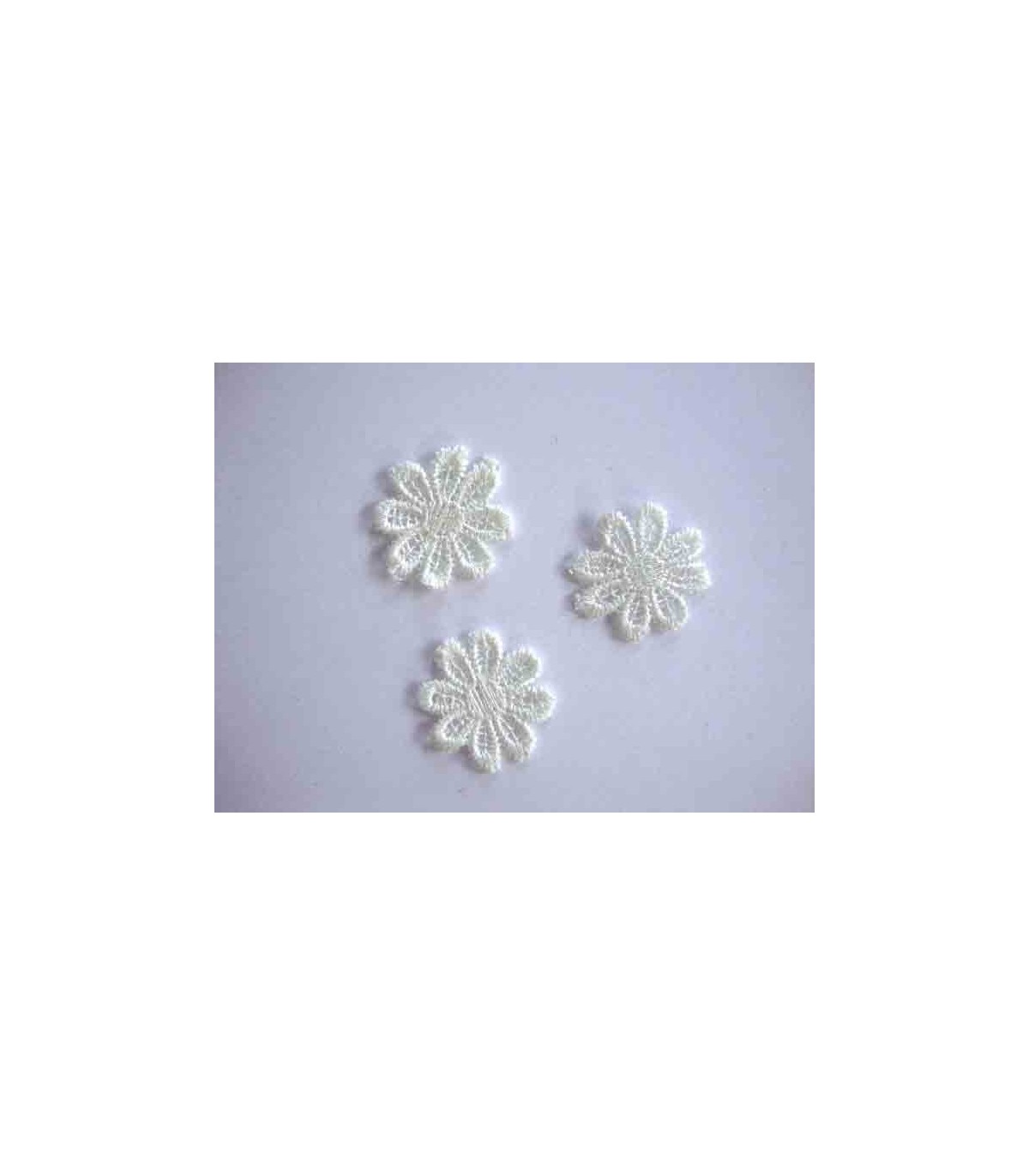 Een opnaaibare cremekleurige bloemapplicatie met een doorsnee van 25 mm