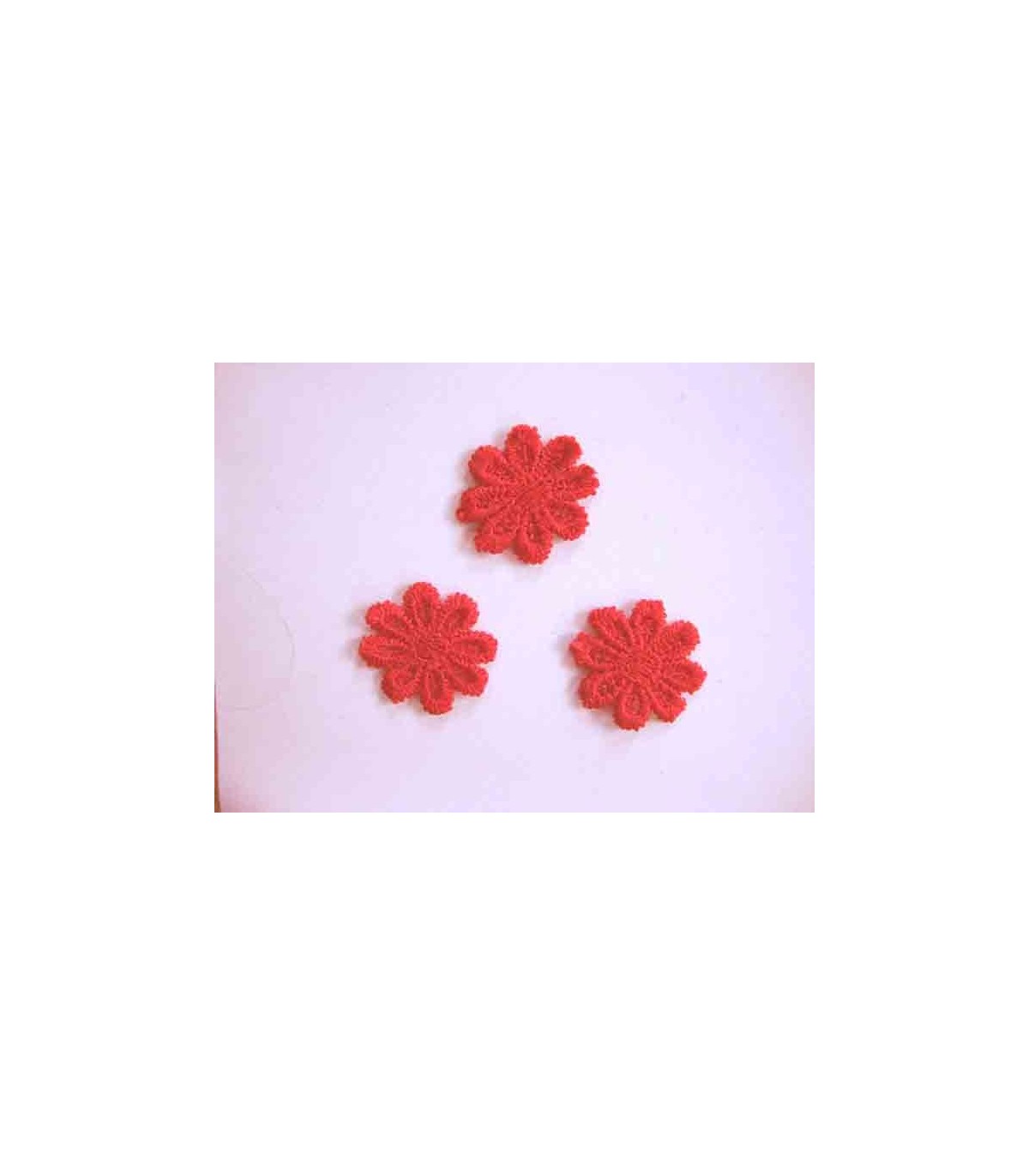 Een opnaaibare rode bloemapplicatie met een doorsnee van 25 mm