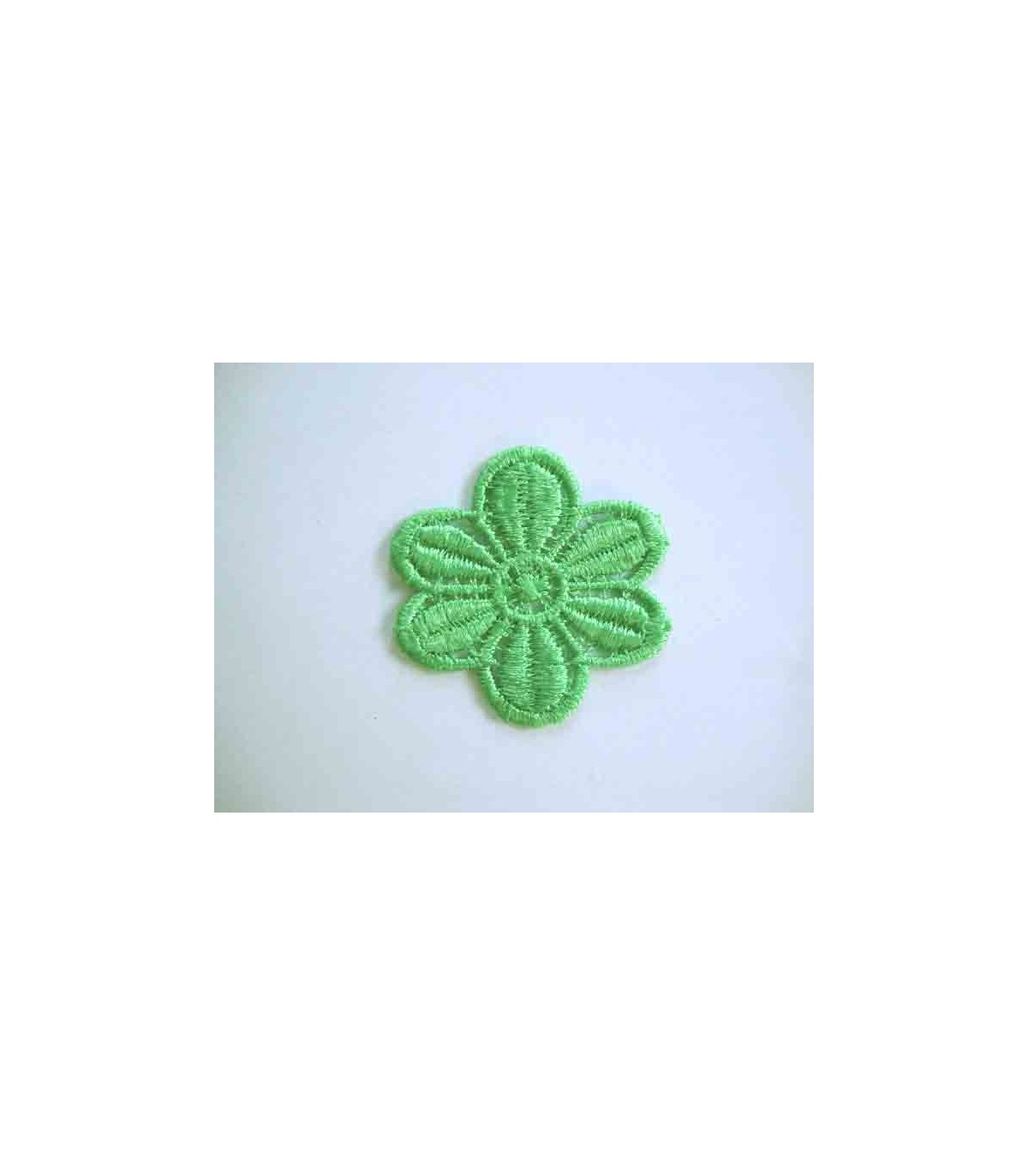 Een opnaaibare appelgroene bloemapplicatie met een doorsnee van 50 mm