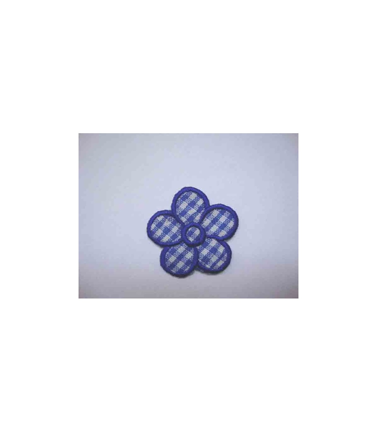Kobalt kleurigje boerenbont bloem applicatie. opstrijkbaar 3.5 cm. doorsnee.