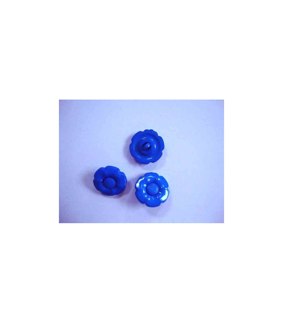 Een kobaltkleurige bloemknoop met een wisselbaar hart. Doorsnee 20 mm. Zo kunt u van 2 knopen van dezelfde maat, een tweekleurige knoop maken.Bij de witte knoop 20 mm ziet u hoe het precies werkt. (dat is de eerste foto)