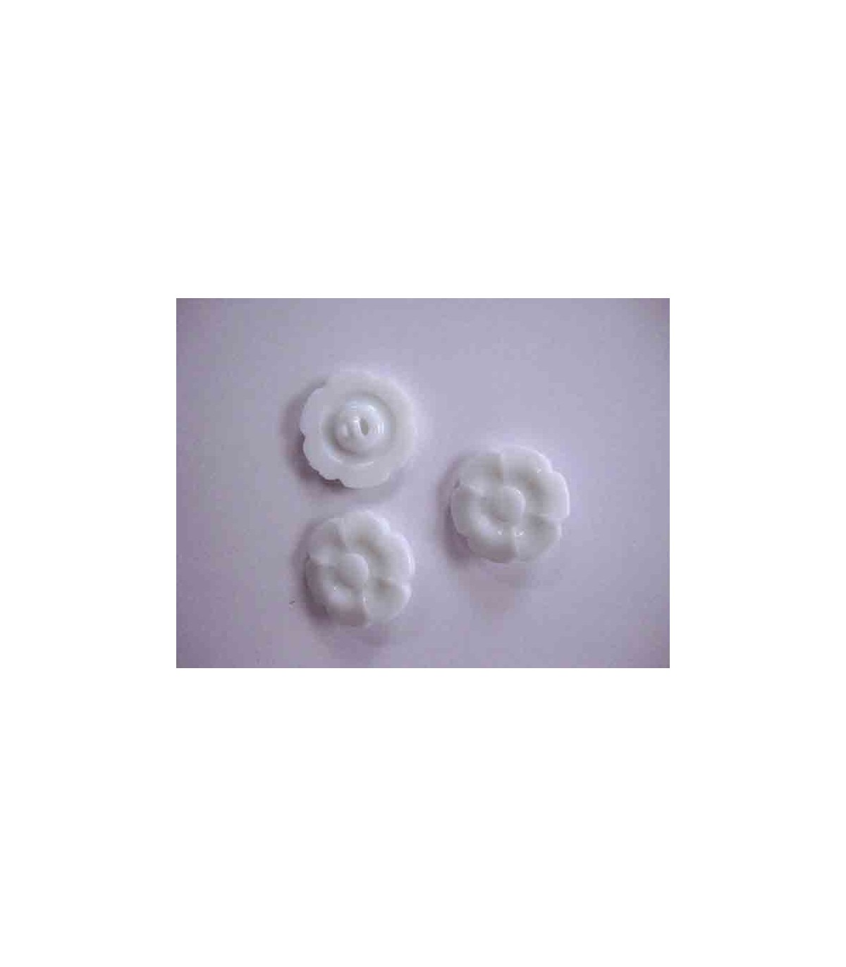 Een witte bloemknoop met een wisselbaar hart. Doorsnee 25 mm. Zo kunt u van 2 knopen van dezelfde maat, een tweekleurige knoop maken.Bij de witte knoop 20 mm ziet u hoe het precies werkt. (dat is de eerste foto)