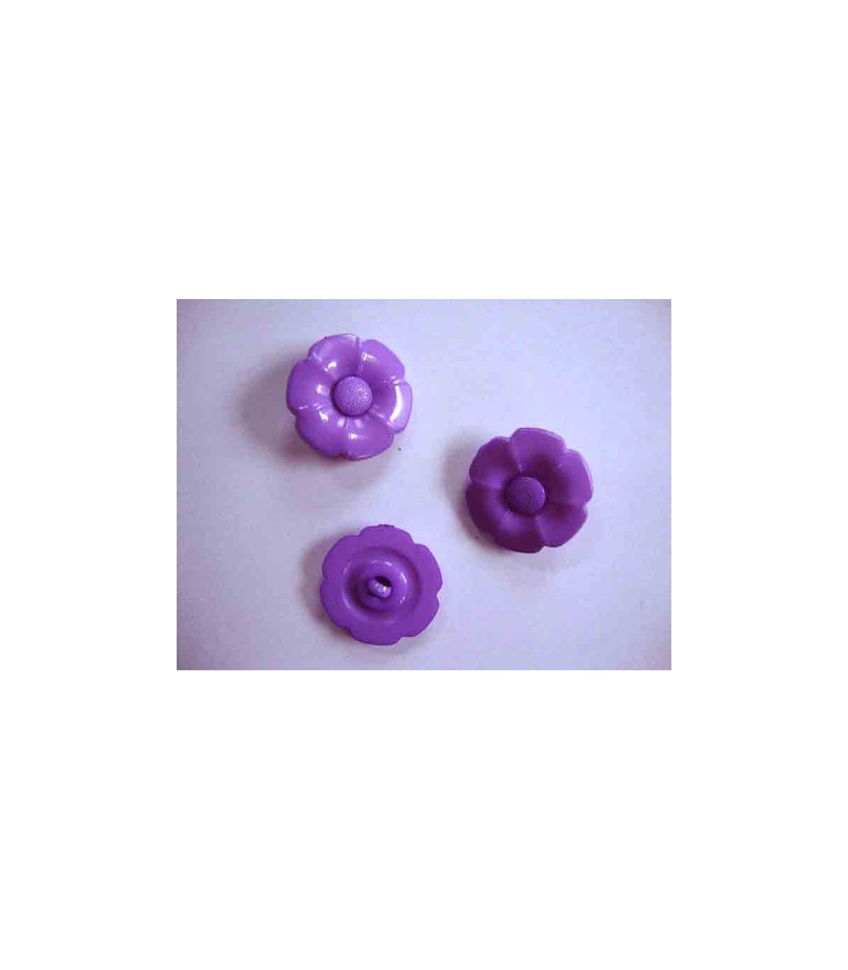 Een lilakleurige bloemknoop met een wisselbaar hart. Doorsnee 25 mm. Zo kunt u van 2 knopen van dezelfde maat, een tweekleurige knoop maken.Bij de witte knoop 20 mm ziet u hoe het precies werkt. (dat is de eerste foto)