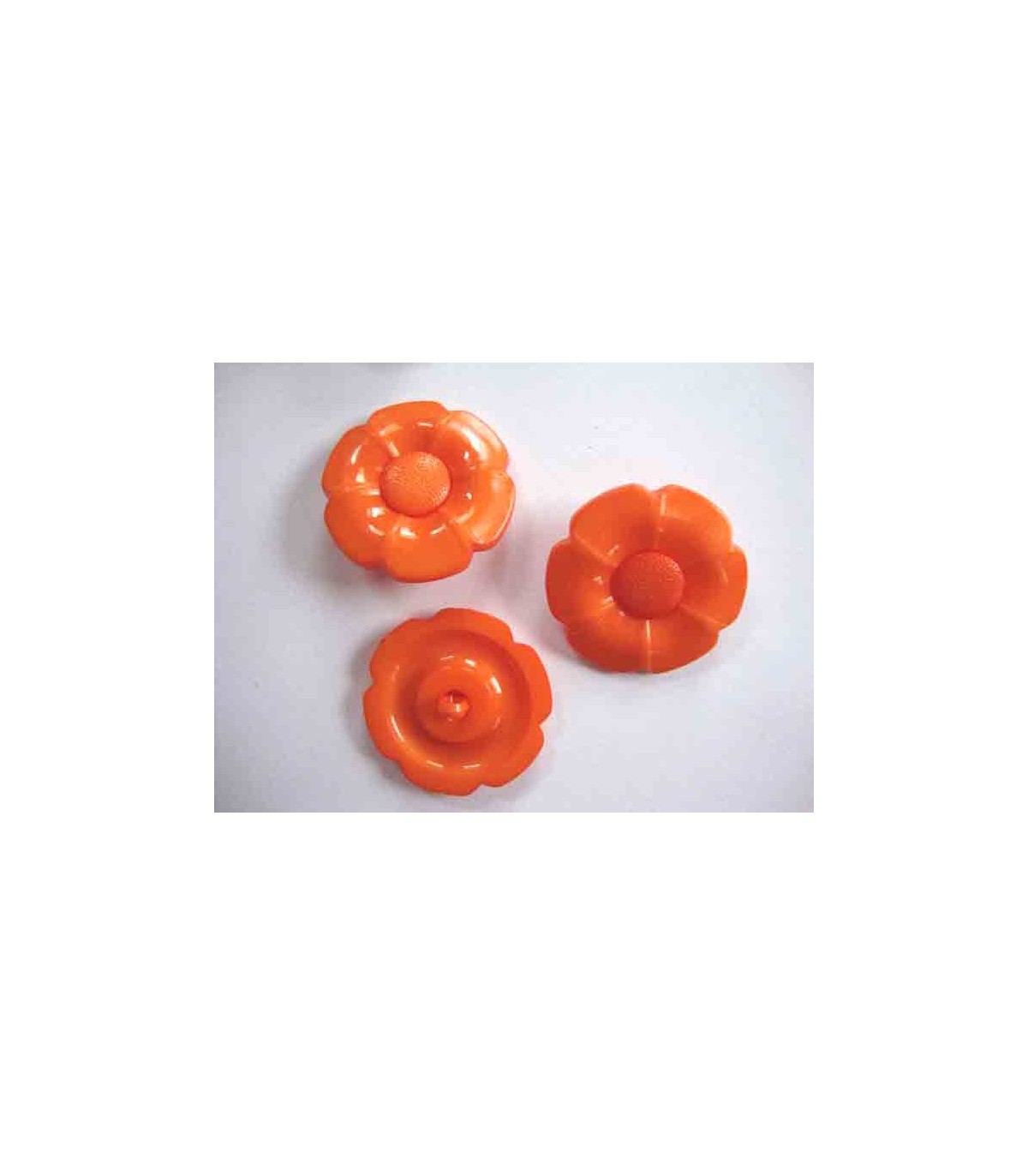 Een oranje bloemknoop met een wisselbaar hart. Doorsnee 35 mm. Zo kunt u van 2 knopen van dezelfde maat, een tweekleurige knoop maken.Bij de witte knoop 20 mm ziet u hoe het precies werkt. (dat is de eerste foto)