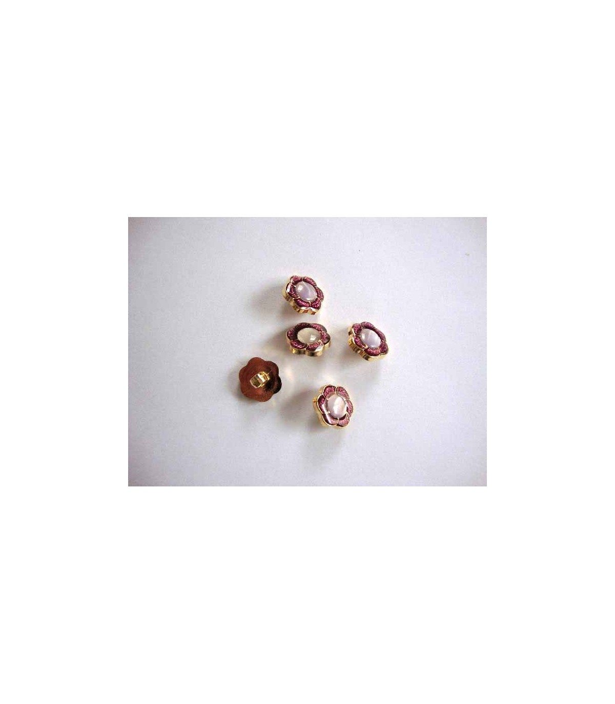 Een goudkleurige kunststof bloemknoop met een paars/ivoorkleurige bloem met een doorsnee van 15mm.
