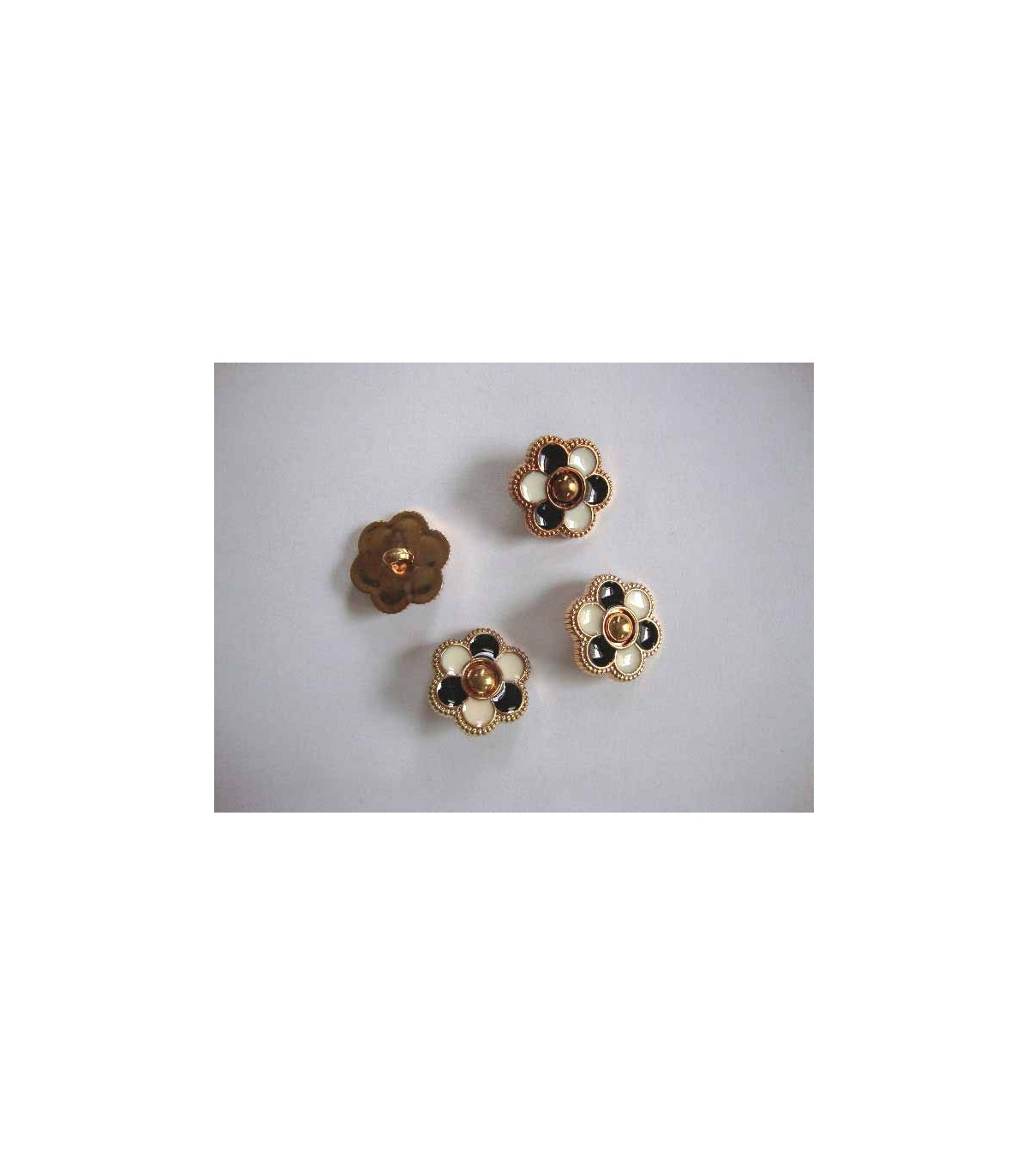 Een goudkleurige kunststof bloemknoop met 2 kleurige zwart/witte bloem met een doorsnee van 25mm.