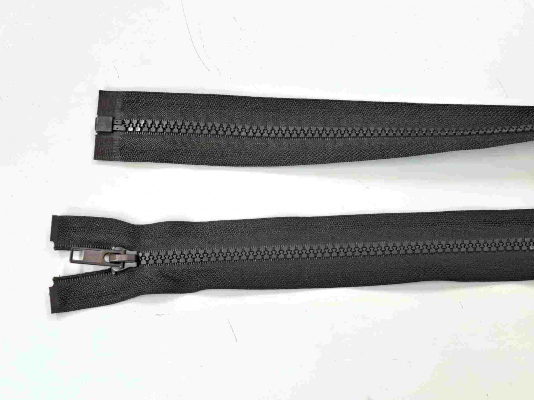 De zipper en de blokken zijn donkerbruin, de rest is antraciet