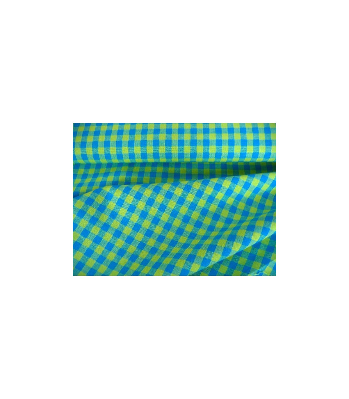Lime/aquakleurige boerenbont ruit van 10 x 10 mm. Ton sur ton