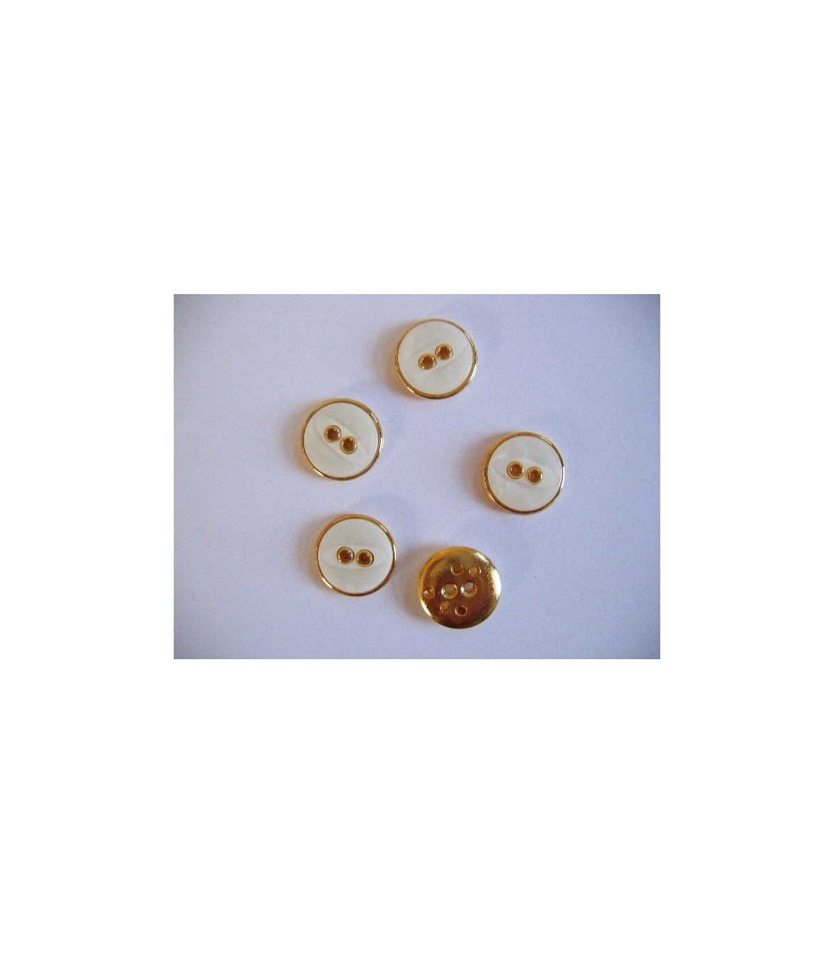 Goud/witte kunststof bruids knoop. 18mm. doorsnee.