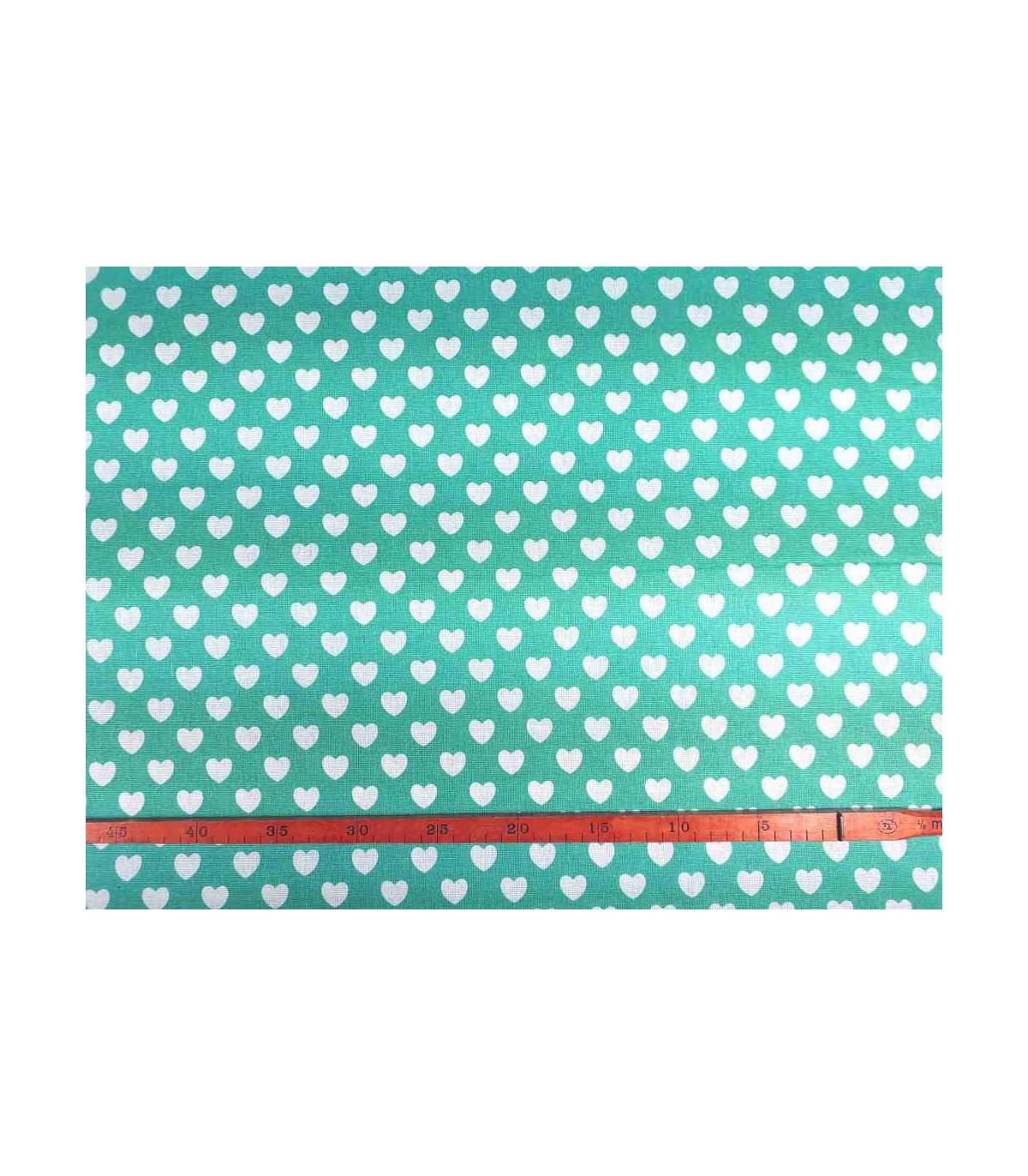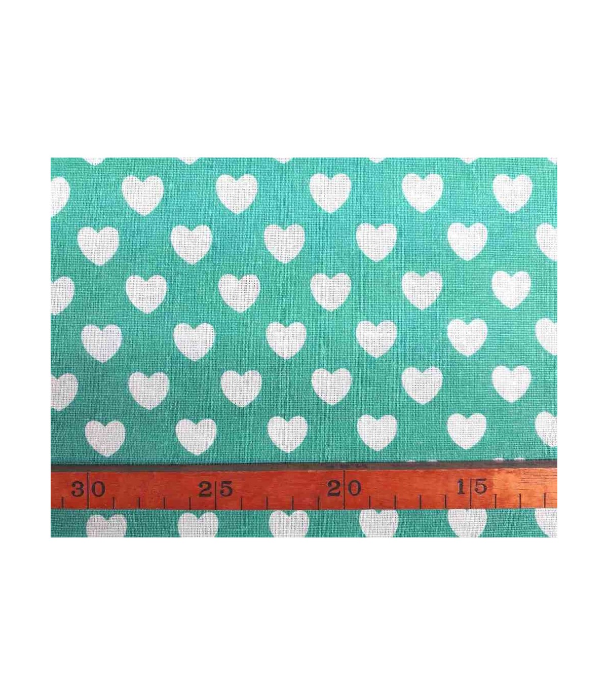 Een mintgroene canvas stof bedrukt met witte hartjes.