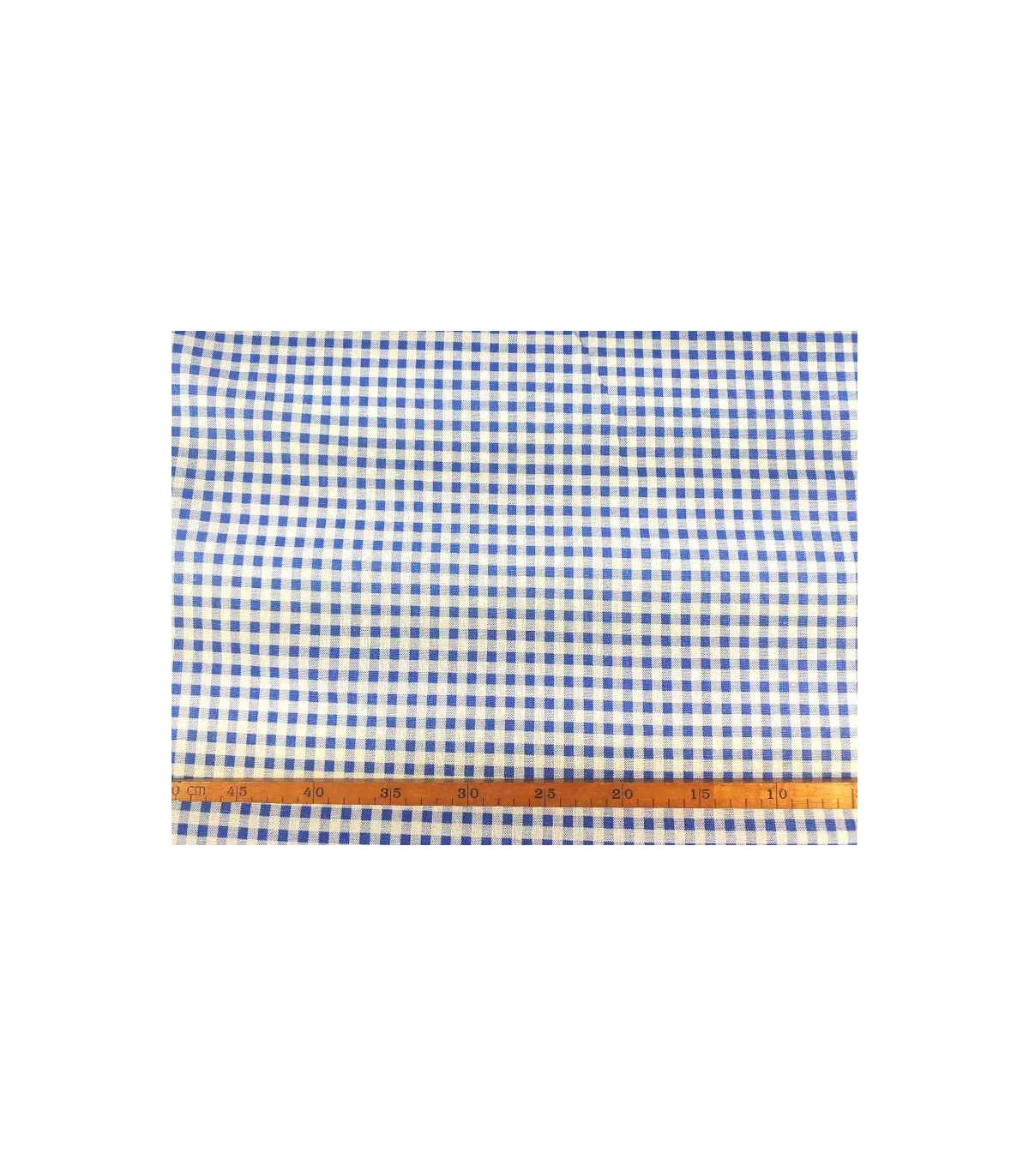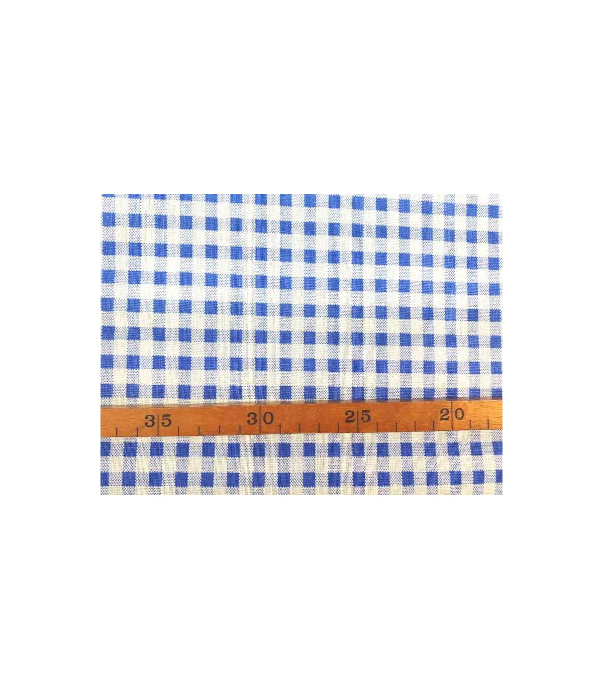 Een met kobaltkleurige boerenbont ruit bedrukte canvas, die iets wat stug aanvoelt.