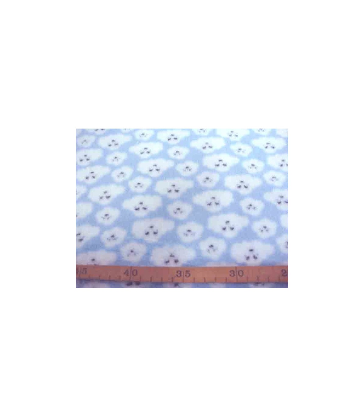 Coral fleece lichtblauw met witte poedelkopjes. Aan 2 kanten superzachte rekbare fleece. Deze fleece moet wel afgewerkt worden.