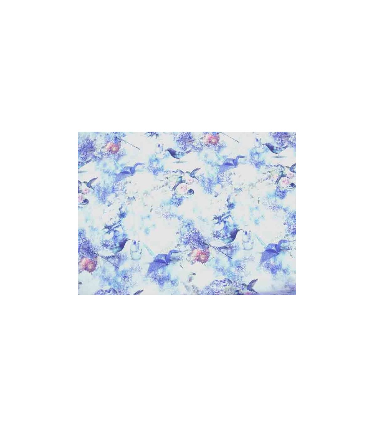 Deco stof met een panama binding met een digitale print. Delftsblauw met vogels en bloemen