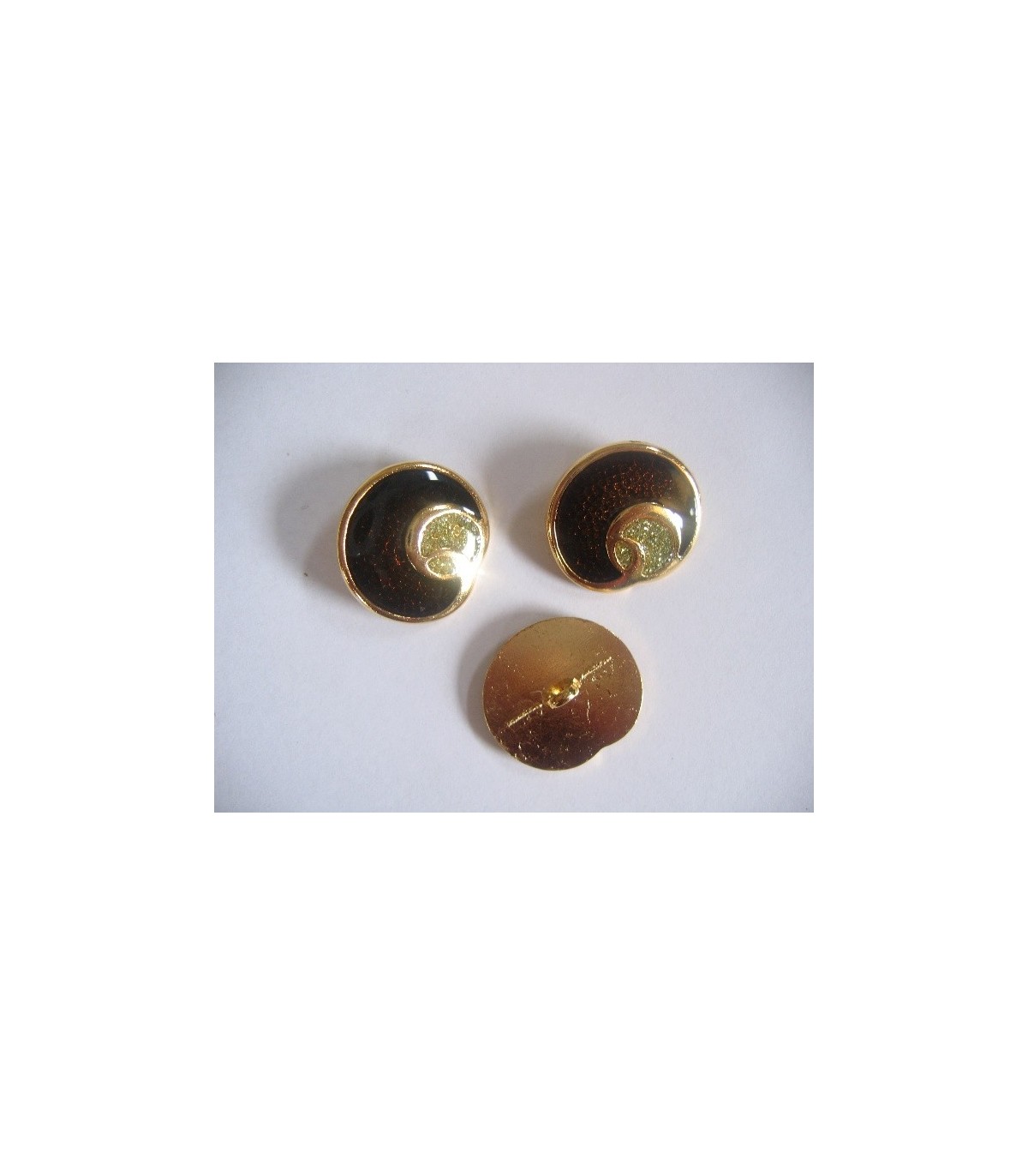 Goudkleurige metalen damesknoop. Donkerbruine knoop met zilveren glitter. Doorsnee 22 mm.
