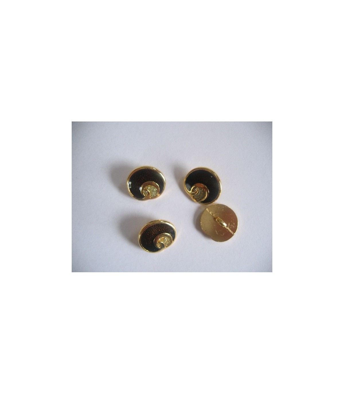 Goudkleurige metalen donkerbruine damesknoop met zilveren glitter. Doorsnee 15 mm.