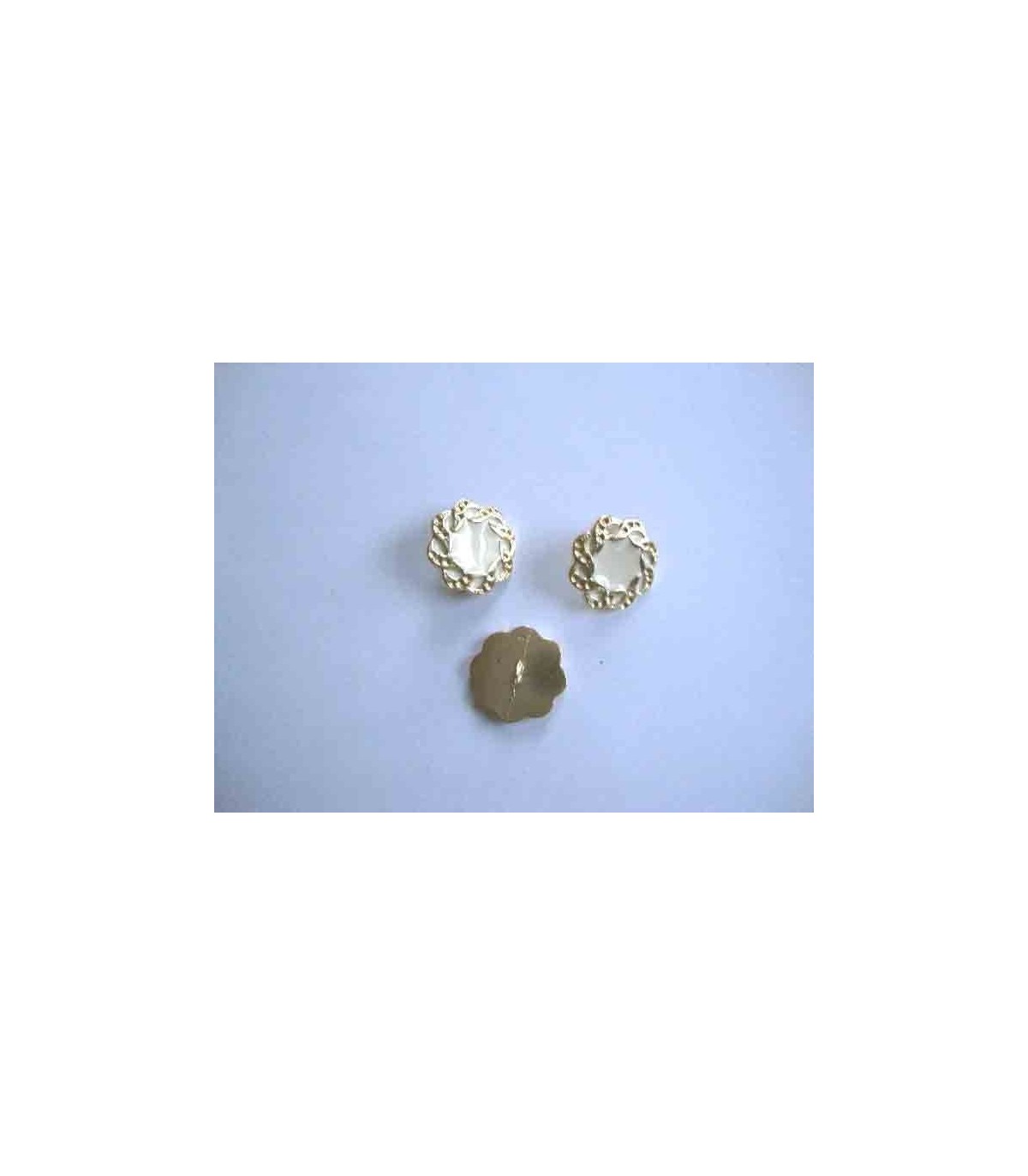 Een metalen damesknoop met ivoor/gouden vlecht. Doorsnee 20 mm.