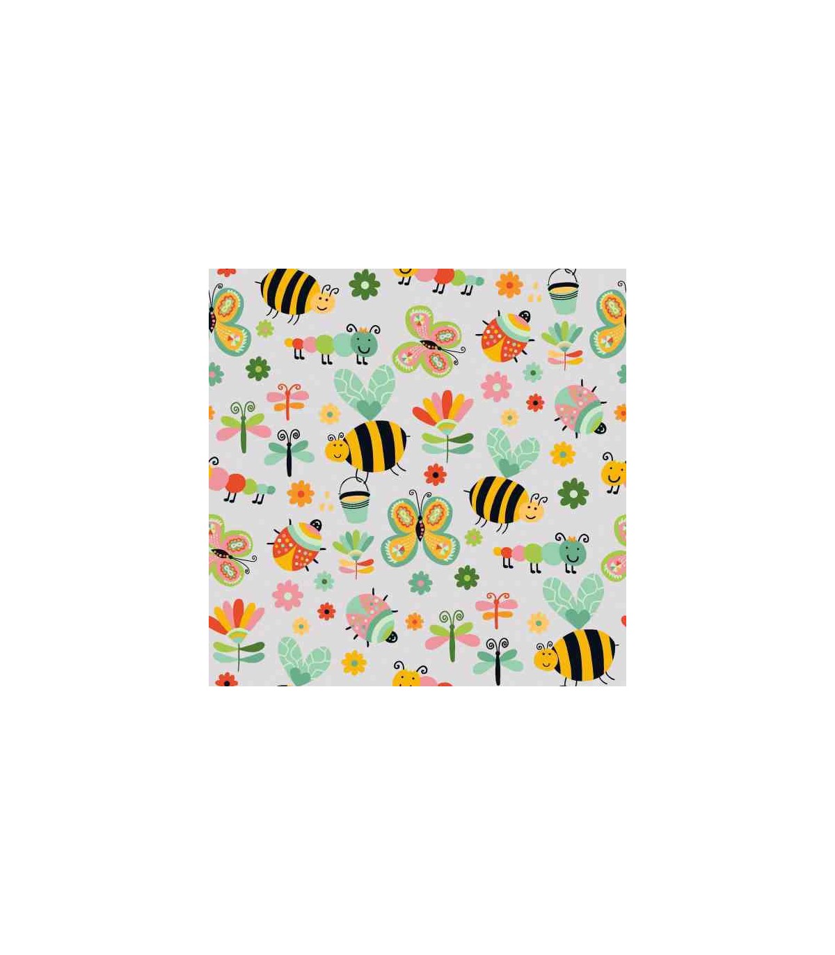 Dapper katoen Garden Party Lichtgrijs met insecten