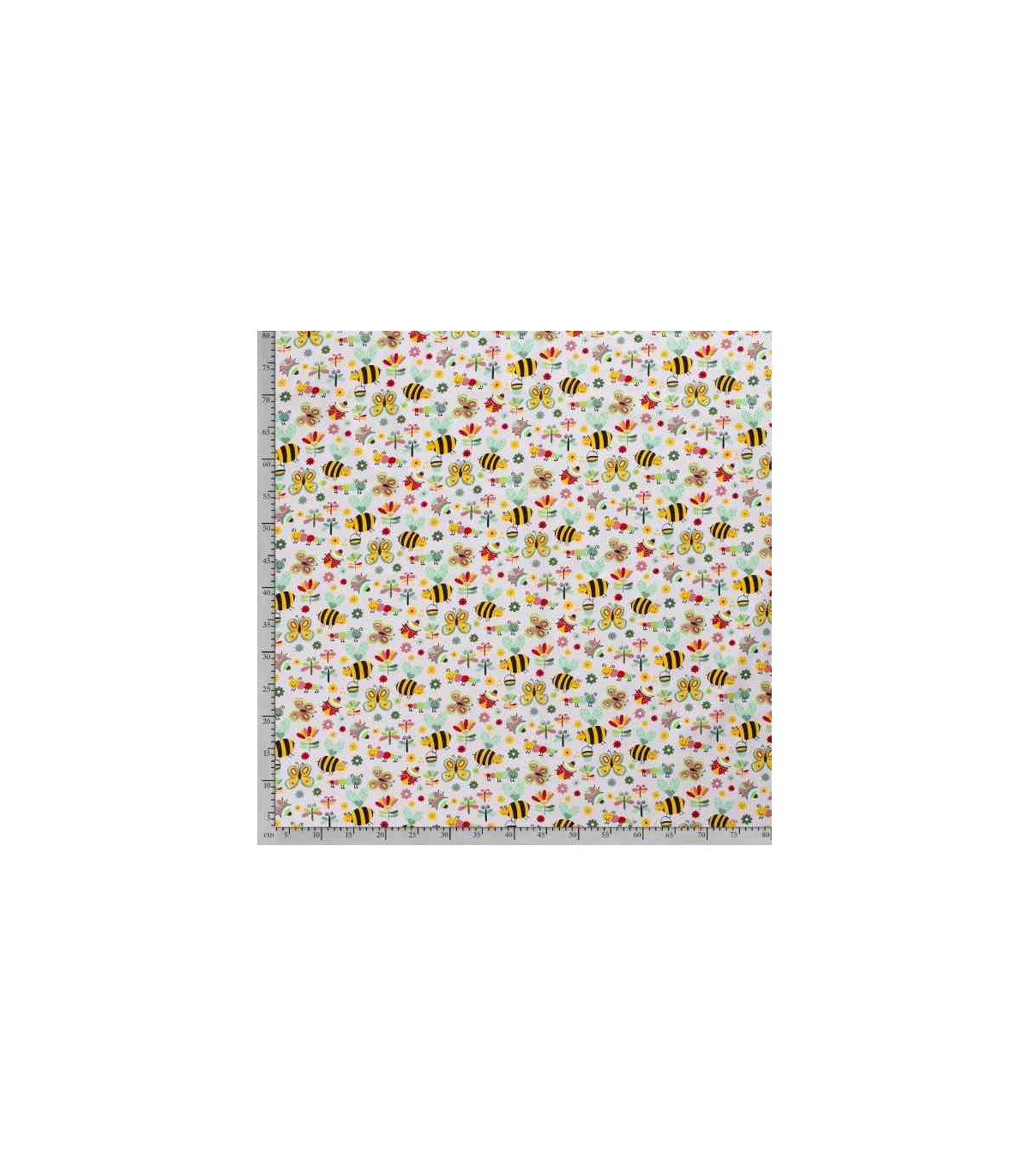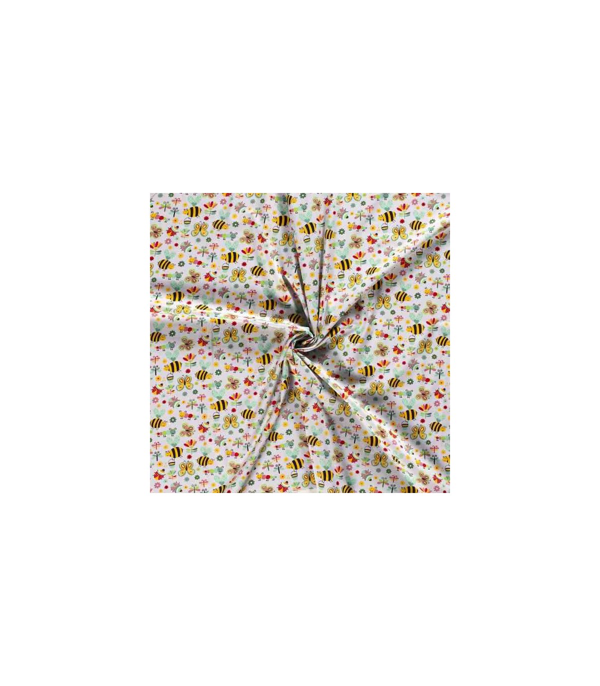 Een lichtgrijze poplin/katoen met een insecten print