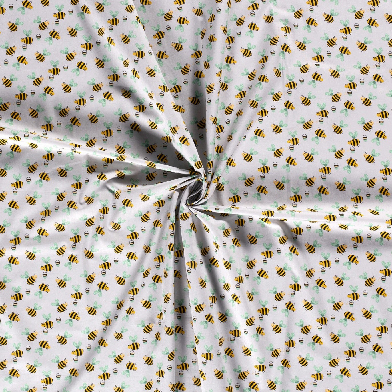 Een lichtgrijze poplin/katoen met een bijtjes print